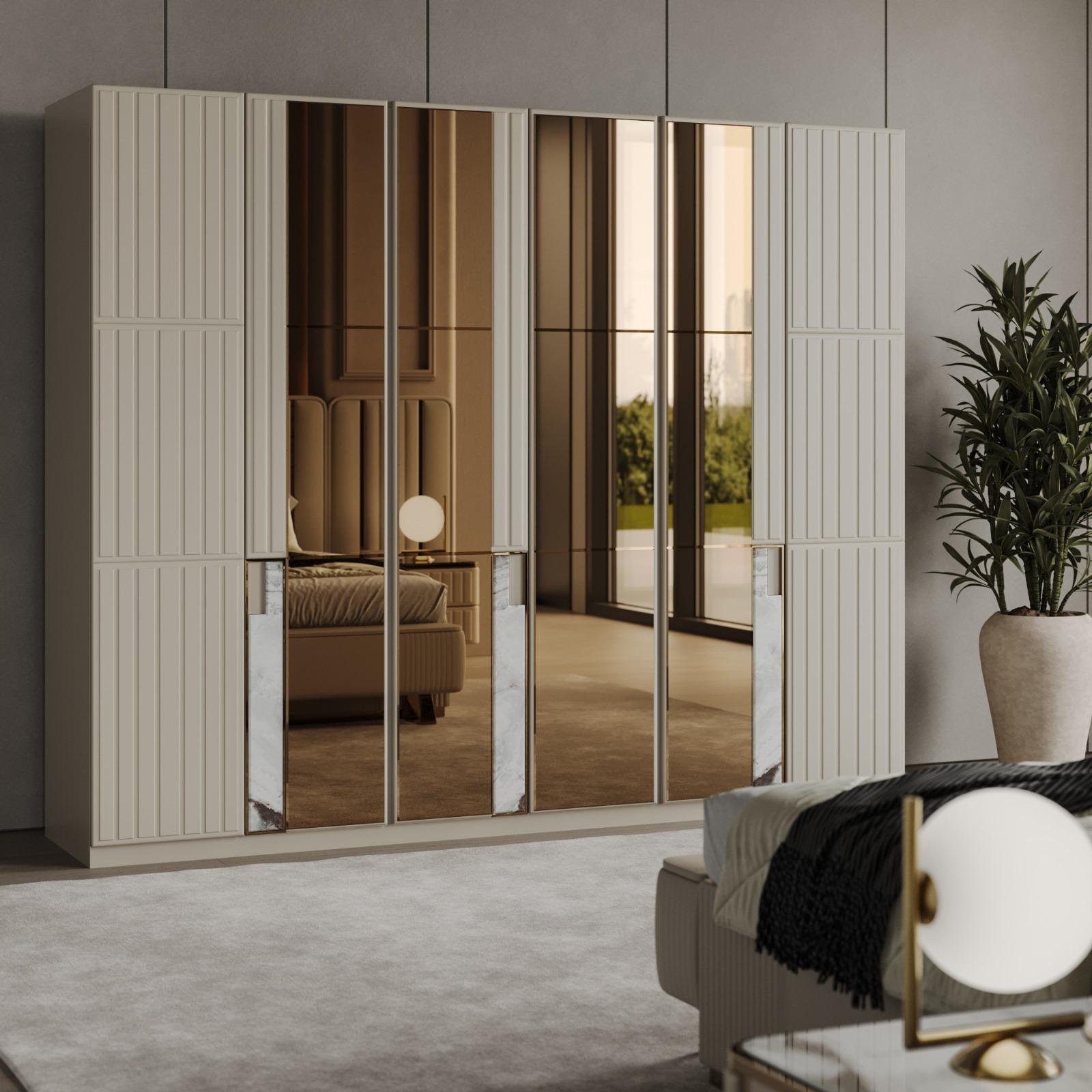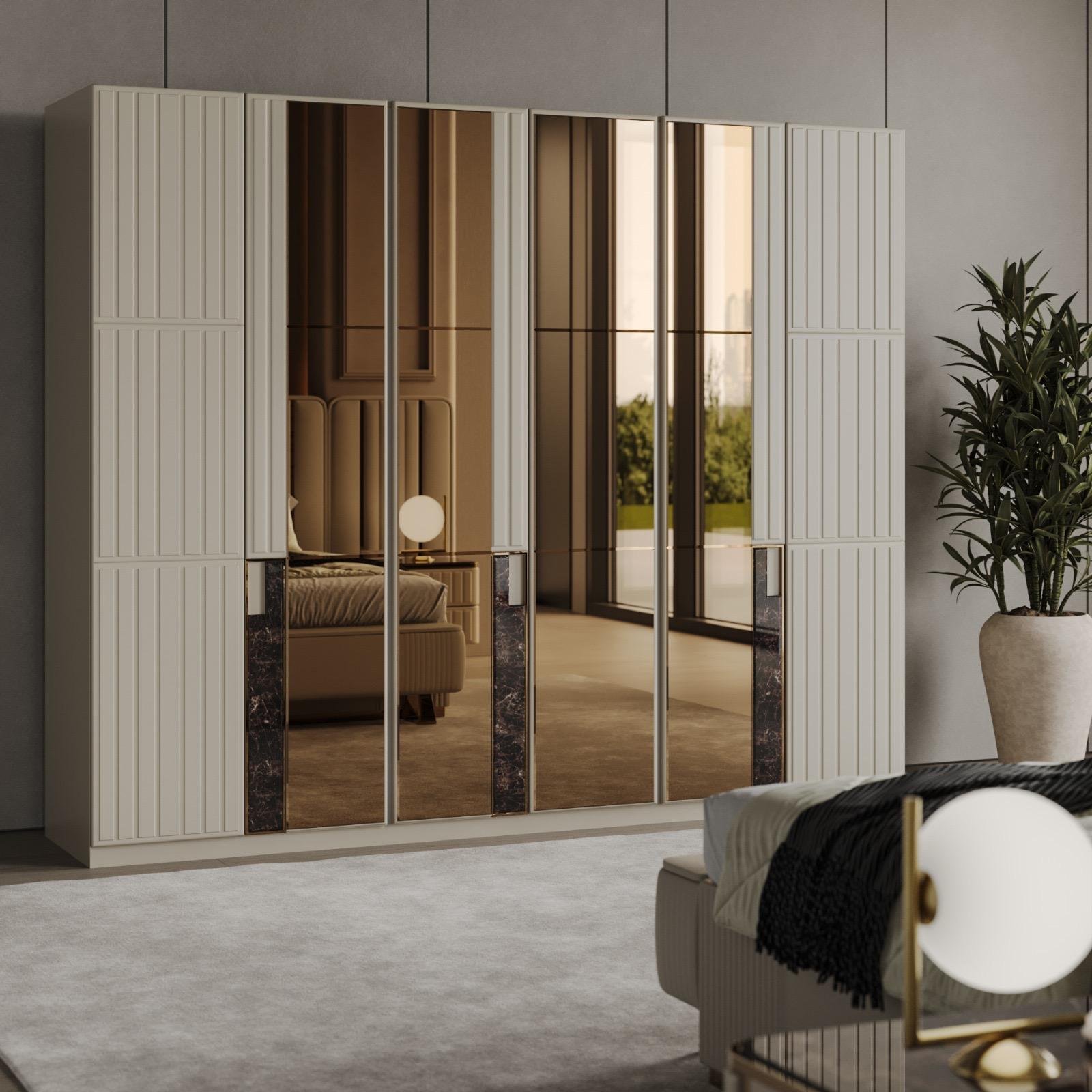 Joker Dolap, modern İtalyan mobilya çizgilerinden ilham alınarak tasarlanmış lüks bir gardırop modelidir. Soft renk paleti ve zarif hatlarıyla yatak odalarına şıklık ve ferahlık katar. Geniş iç hacmi sayesinde fonksiyonel kullanım sunarken, dış yüzeyinde kullanılan ayna ve cam detayları mekâna derinlik ve modern bir estetik kazandırır.